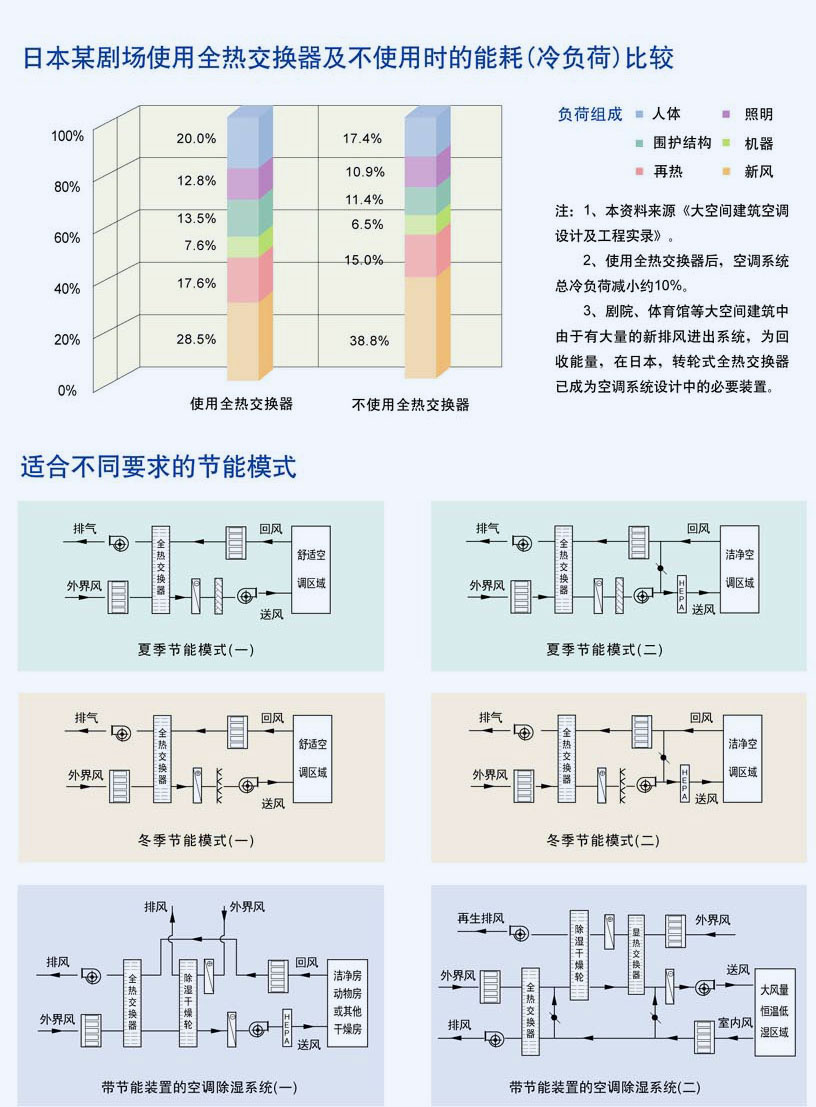 日本某劇場使用全熱交換器及不使用時的能耗(冷負荷)比較
